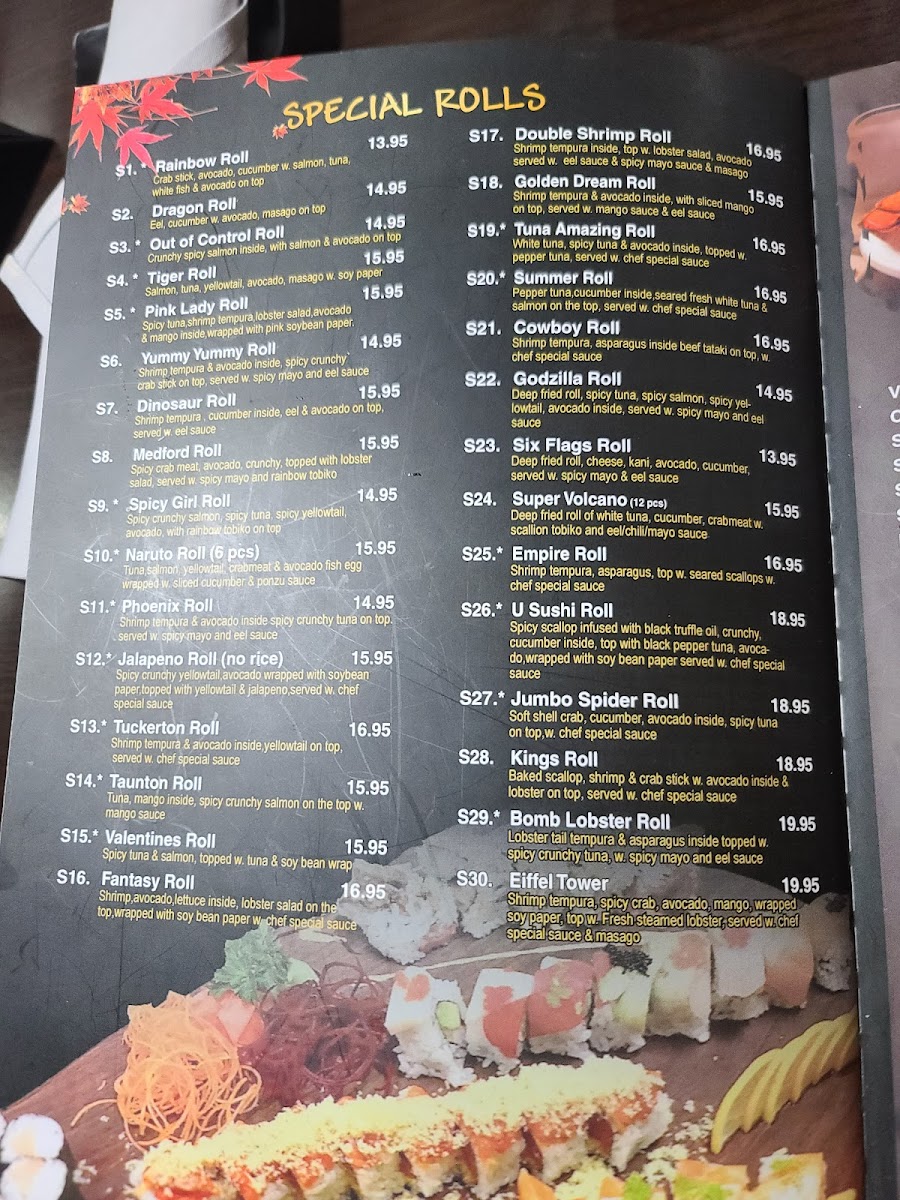 Spicy toro inside pepper toro on top, scallion and masago on top. Served with wasabi mayo sauce and spicy mayo.